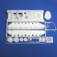 主砲塔のフレームアンテナを再現しているほか、機関部のルーバーは開状態として隙間から換気用のファンが見えるようなパーツ構成としています。
