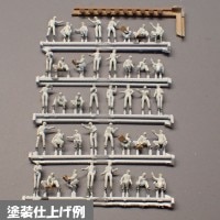 内容物は 飛行機左右の車輪止め係、繋留策係の4体を1機セットとして18機分(72体)と立 ち作業中の8体の合計80体入りとなっています。