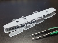 船体が反ってしまっている場合は内側にピアノ線を接着して補正してください。