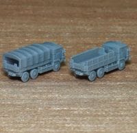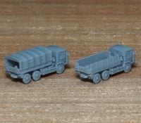 1/700スケール 3トン半大型トラック 1980年代配備開始のSKW-46X系列と1990年代以降配備開始のSKW-47X系 列の車体5両ずつ、計10両のセットです。 荷台幌の有無を情景に合わせて自由に選択可能です。