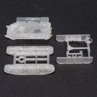 本車の特徴としては後のスイス製Sタンクや陸上自衛隊の74式戦車のように油圧シリンダーにより車高を上下する機構を備えている点が挙げられます。キットでは足回りパーツの組み換えにより車高を上げた状態と下げた状態の両方を再現できるようになっています。